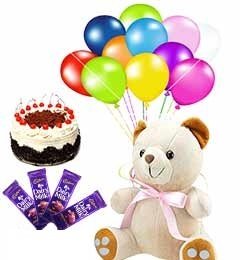 a birthday celebrationblack forest cake 4 * 165 g big cad bury 10 birthday latex balloon small teddy 8 inches..design may vary |