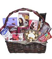 Chocolate Basket-15Includes: Ferrero Heart Shaped, toblerone,Cadbury milk, Hershey's Kisses,Meiji Almond,Loacker Napolitaner,Vochelle Fruit & Nut Bar, Arnotts Timtam Wafer,Meiji Macadamia,Chocopie, m& m. |