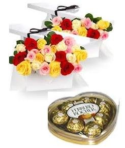 18 Multicolored Roses w/ferrero18 Multicolored Roses w/ferrero red pink orange pomelo peach |