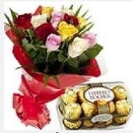 Mix Roses With Ferrero Rocher12 Mix Roses With Ferrero Rocher Chocolate Box |