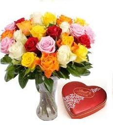 Multicolored Roses / lindt heart24 Multicolored Roses / lindt heart box red pink orange pomelo peach yellow |