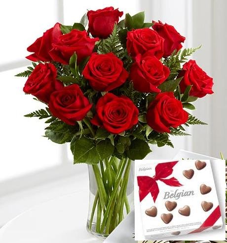 The Sweetest Romances Bloom12 RED ROSES IN A VASE 100 G BELGIAN CHOCOLATES |