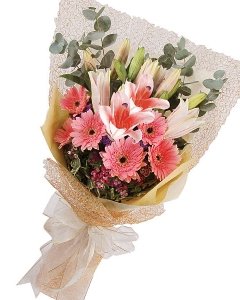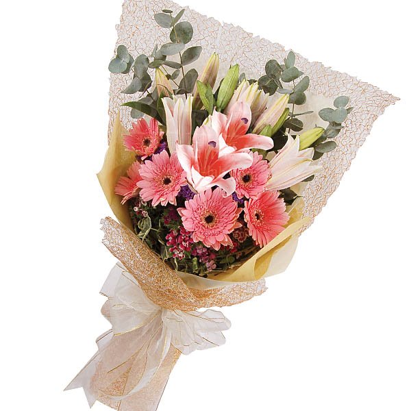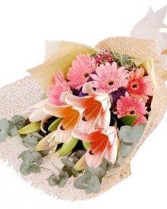 Missing DayFusion of Lilies, Holland Daisies and Eucaplytus to make her day. Picture shown is 3 Stalks of Stargazer Lilies and 6 Stalks of Gerberas / Holland Daisies. |