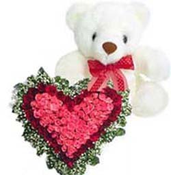 I Love You !Send your beloved these red and pink roses, and open up your heart to him/ her. to offer her. (2 dozen red roses,3 dozen pink roses and 24 " teddy bear). |
