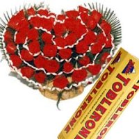 Your Love Is PreciousA beautiful arrangement of 3 dozen red roses in a heart shape basket with ( 6 packs x 50 gm each)toblerone that'll make her feel really special. |