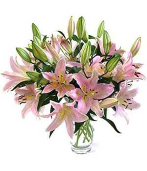 Miss You10 stalks perfume pink lilies arrange in a exquisite vase(vase included). |