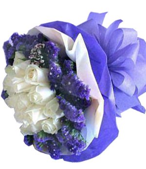 Your Mind19 white roses (roses color can be changed to red, pink, champagne if you want), with purple forget-me-not. |
