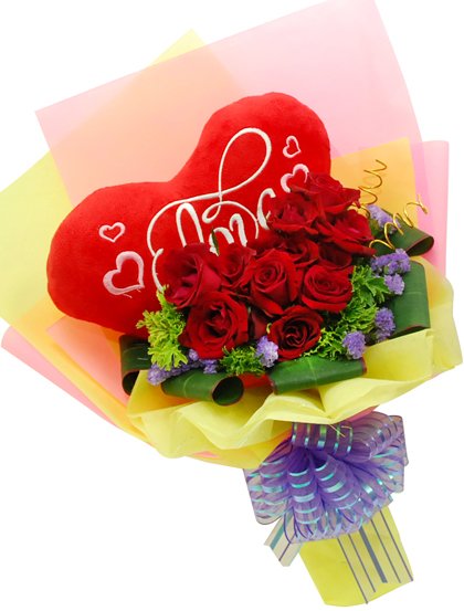 Love Pillow with 12 stalks red roses.