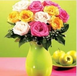 A Perfect Fit !12 cute multicolor roses way to say I love you to your special someone.Your gift will come with a greeting card. red pink orange pomelo yellow |