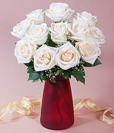 Wish your friend/ loved one a wonderful day with this 12 white roses arranged beautifully in a glass vase.
